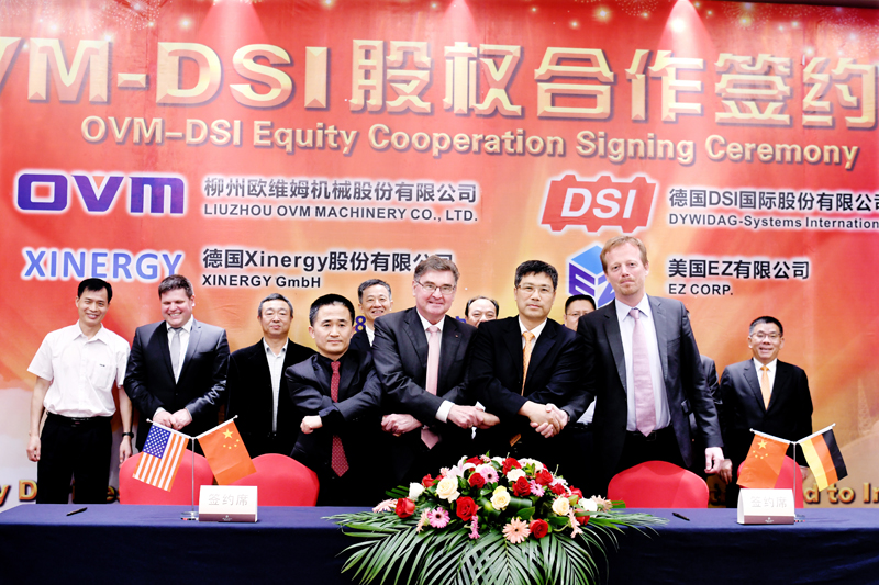 歐維姆公司作為集團公司第二業務板塊,已成長為我國預應力技術的領跑者,目前在國內擁有柳州、吉林四平、湖北嘉魚等制造基地,營銷網絡遍布全國。同時,歐維姆在香港設有兩家子公司,設立了中東、越南、印尼3個海外辦事處和拉美臺、亞非、日韓3大海外業務片區,國際營銷網絡覆蓋50多個國家和地區。此次,歐維姆公司與德國DSI公司的合作,主要基于德國DSI公司是全球頂級的后張預應力系統、巖土、礦山工程及隧道技術系統供應商,對國際預應力市場運作有著獨到經驗,是全球預應力行業領先企業,在風塔技術方面在歐洲處于行業領先地位。
